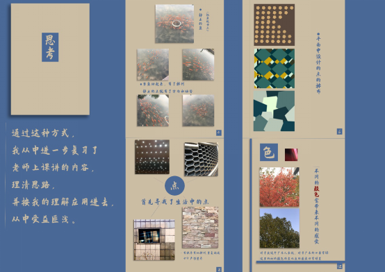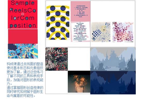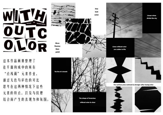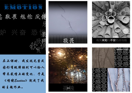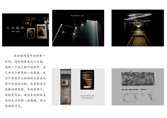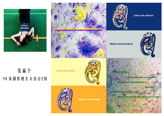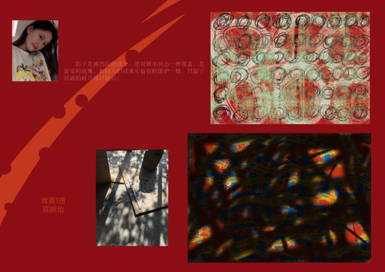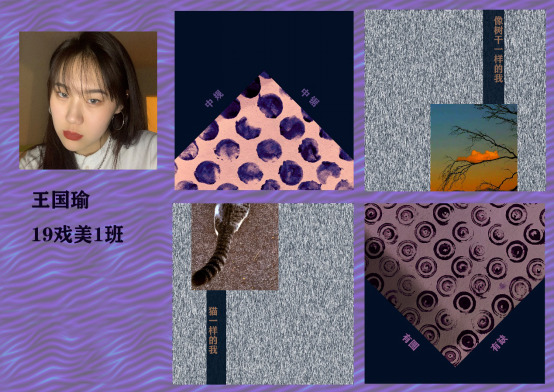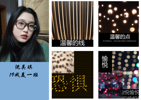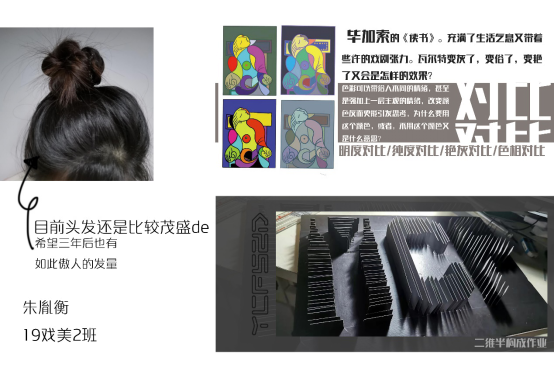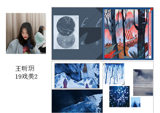 “《构成》课程以空间‘维度’来划分知识范围,分为‘二维设计基础’与‘三维设计基础’,本次展览展示作品为《构成》课程中的“二维设计基础”部分。我们以文本整合的练习方法,培育学生多元化的思维能力和设计表达方法。纵观19级戏美两个班同学们的作业,虽带有初涉设计领域的青涩之感,但可贵的是他们对待专业的饱满热情,学习和思考时展现出的勇于探索、认真执着的治学精神,都让我感受到了茁壮成长的生命气息,我想这就是“课程思政”的真意所在吧。”