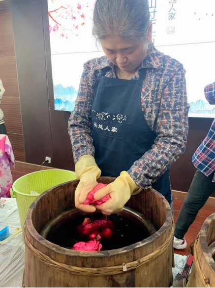 随后传承人吴莹女士与杨洁女士带领大家进行了二十四节气“小雪”主题的草木染体验活动,由在场教师纷纷亲手体验了草木染丝巾的全部制作过程,现场气氛热烈,参与者纷纷表达了对非遗技艺的喜爱之情,成就感与收获感满满。