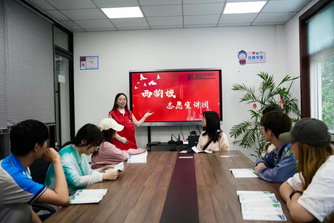 志愿者们还走进桐乡文化馆,为参观者们讲解西柏坡的历史故事和精神内涵。他们通过图片、视频等多媒体手段,生动形象地展示了西柏坡的自然风貌、建筑以及曾经发生的革命事迹,让参观者们深受感动。此外,志愿者们还与参观者们进行了互动交流,解答他们的疑问,并分享自己对西柏坡精神的理解和感悟。