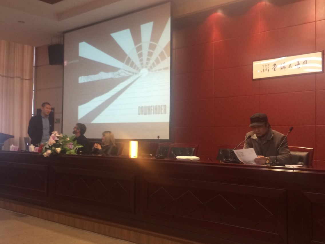 贾金杰教授和郝天娜教授分别进行了主题演讲,翻译人员负责解说,整个过程历时两个小时,进展顺利。夫妻搭档的组合演讲方式本身就会让人耳目一新,待人温和友善的状态更是为其增添了人气。专家结合典型影片的视频片段讲解了特效的形成以及场景和道具的设计,极具专业视野,让大家大开眼界。同时,主讲人强调了团队合作的重要性,就像演讲题目所说的那样,你不是一个人在战斗。同学们了解了宏大场面的制作过程,也感受到设计工作者对于行业的热爱。演讲结束之后,在座的同学们向嘉宾提出了自己的问题,专家也都根据自身的经验和体会耐心解答。