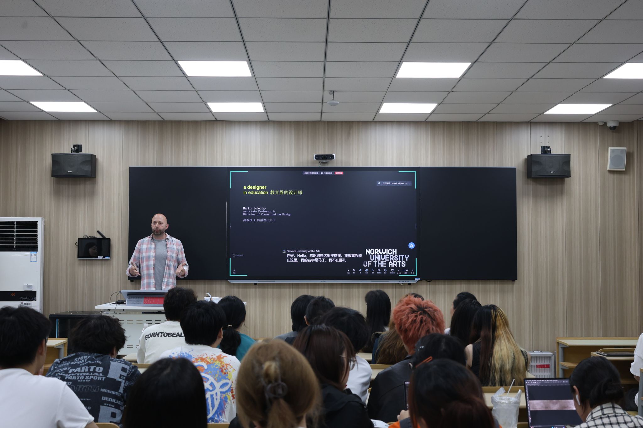 5月16日,英国诺维奇艺术大学传播设计专业主任Martin Christopher Schooley副教授以及英国诺维奇艺术大学中国办公室代表一行来我院考察调研,开启了一天的学术交流与合作洽谈活动,为我院师生带来了国际设计教育的前沿理念与实践经验。