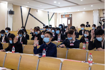 按照选举程序,通过代表的投票表决,大会最终选举产生了新一届学生会主席团,并进行了换届仪式。