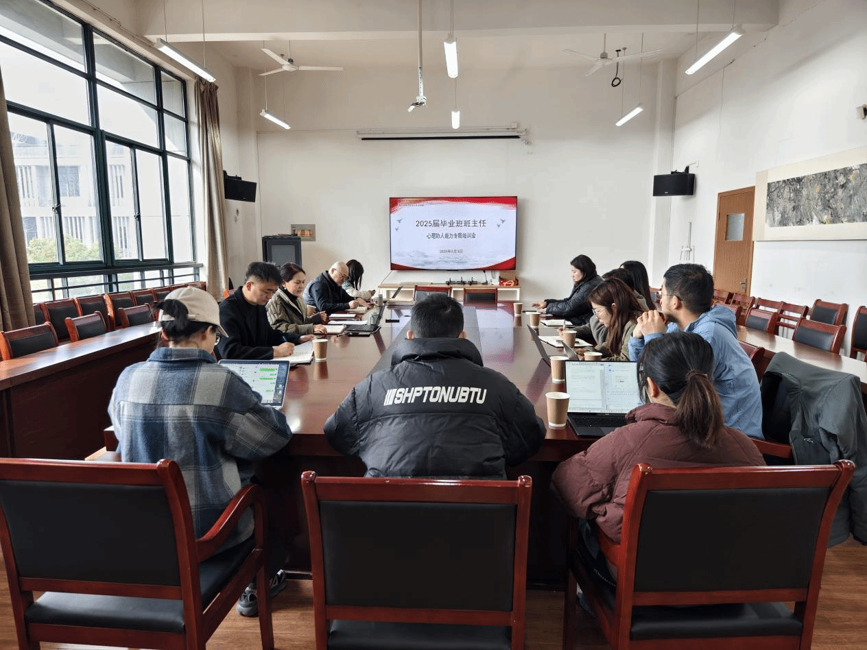 于2025年3月3日下午在学院会议室组织召开“2025届毕业班心理助人能力专题培训会”。学院党委书记、副院长王丽,党委副书记、纪委书记崔舒鹏,学工办辅导员、系主任、全体毕业班班主任参加了本次培训。