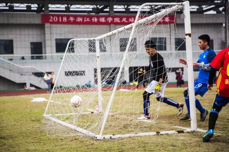 在扛住了管院开场的逼抢后,设艺也逐渐展开了反攻,但在上半场第20分钟,管院赢得前场定位球,管院A队9号游子韬兜出完美的弧线!直挂球门左上死角!设艺门将飞身救险!将球托出横梁!