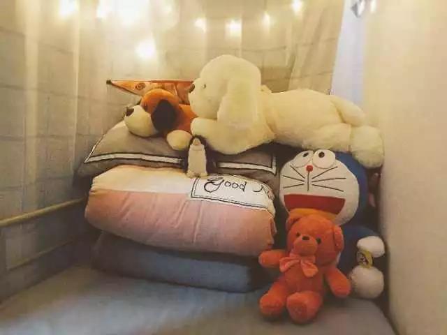 暗黄的小灯串,慢慢的毛绒玩具,叠的整齐的被子都体现主任一颗热爱生活子昂受生活的心。