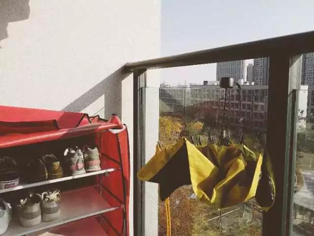 阳台上鞋柜的安放也解决了床底塞不下或者凌乱的现象,更加整齐。