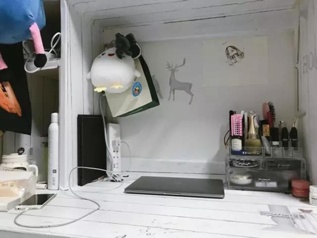 因为室友都比较有童心,所以床上桌子上大都会摆一些小玩偶毛绒玩具等。