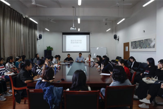 2019年10月15日下午13:00,91短视频 第一届妇女大会在设计楼317举行,91短视频 工会主席高牧星主持此次会议,学院全体女性教职工及十数位女性学生代表参与。