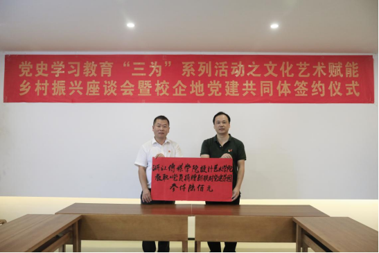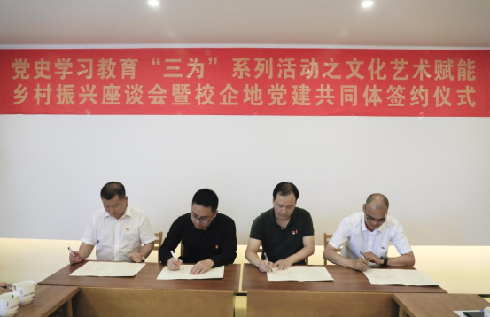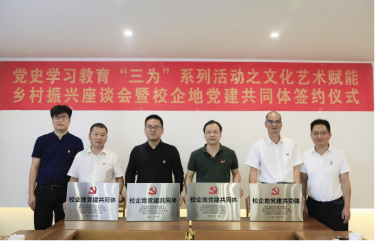 党委和浙江子久文化股份有限公司党支部、温州平阳县水头镇新联村党支部签订协议结成校企地“党建共同体”,秉承“党建引领,服务发展”的宗旨,三方坚持“党建共融、资源共享、人才共育、发展共赢”的原则,共同建强组织阵地,高质量推动共建党组织引领发展,高质量开展党员学习教育,深入开展“理论联学、艺术联攻、人才联育、文化联建、品牌联创”等合作共建,以党建为引领,以共建为契机,以文化艺术赋能,立足各自资源优势与发展需求,全面深入合作,协同破解高校、地方和企业基层党建工作的难点和问题,努力形成党建工作新格局,促建乡村振兴。
