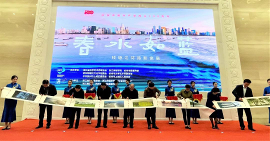 “浙江省诗路智库”、浙江展览馆、杭州市上城区委宣传部共同协办的“春水如蓝—钱塘江诗路影像展”在浙江展览馆开幕。