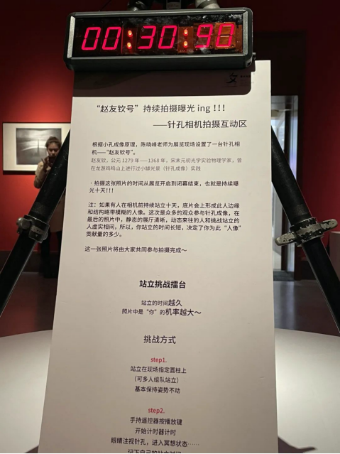 是钱塘江影像考察创作营经过长达一年的田野调查、工作坊授课与影像创作,为钱塘江创建的一份系统性影像档案。钱塘江流域的渔业生产和生态、钱塘江上往来穿梭的货运船、钱塘江上跑船人家的生活与精神世界、塘江边一位普通农民画师的艰辛历经、钱塘江边的16条最美的跑道等,涵盖了钱塘江流域的水文、地理、生态、建筑、方言、民俗等方面。展厅还设计复原了游埠古镇的电影放映空间与竹制品集市,让观者坐下来,欣赏一部“乡村电影”,阅读一本创作营成员精心制作的手工书。此外还用影像化的手段“复原”了钱塘江古村落的戏曲砖雕。为了让更多人体验小孔成像,用自制针孔相机拍摄太阳轨迹的衢州摄影师陈晓峰将在展览现场开设工作坊,指导大家制作一台属于自己的针孔相机,现场拍摄照片,现场暗房冲印照片,体验传统的黑白暗房。