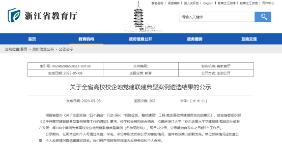 根据省委办《关于全面实施“四个融合”行动深化“抓院促系、整校建强”工程推动高校党建提质创优的意见》,结合省委组织部《关于开展党建联建典型案例推荐工作的通知》要求,经学校申报和综合遴选,拟确定浙江大学“校企地高水平党建联建 赋能农业教科产发展”等100个案例为省高校校企地党建联建典型案例,我校91短视频