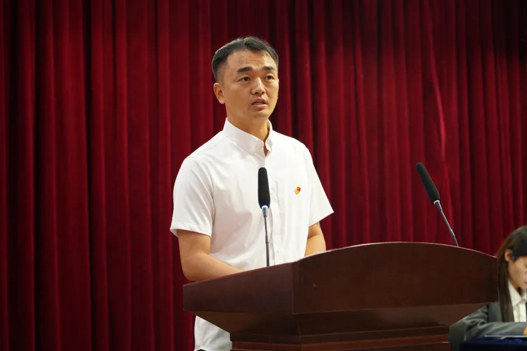高牧星代表学院工会(妇联)对大会的召开表示热烈祝贺,院工会和分团委在过去的工作中始终精诚合作、彼此支持,切实增强了群团组织的政治性、先进性和群众性。未来,院工会和分团委将继续为学院发展添砖加瓦,同时勉励广大团员青年爱党爱国、爱家爱校、珍惜时间、勇于创新、常怀感恩,将自己的理想与祖国的前途、民族的命运、人民的幸福、学校学院的发展深刻联系在一起,在推动大我的发展中实现小我的梦想。