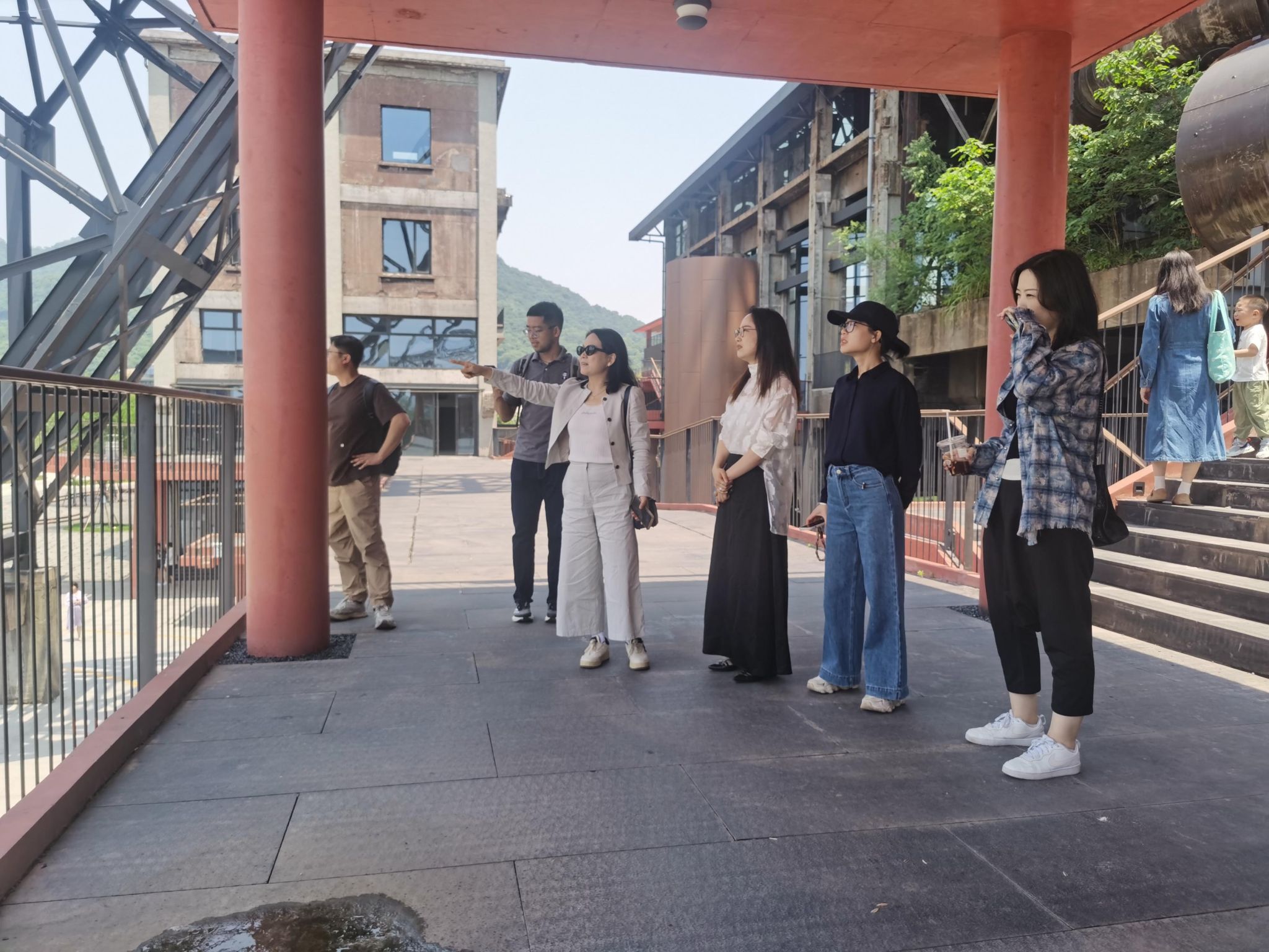 抵达大运河杭钢公园后,学院一行人在园区工作人员的陪同下,对公园的整体环境、建筑特色、空间布局等进行了全面考察。大运河杭钢公园融合了工业遗存与现代景观,其独特的文化氛围和丰富的空间资源为设计艺术教学提供了天然的实践场所。