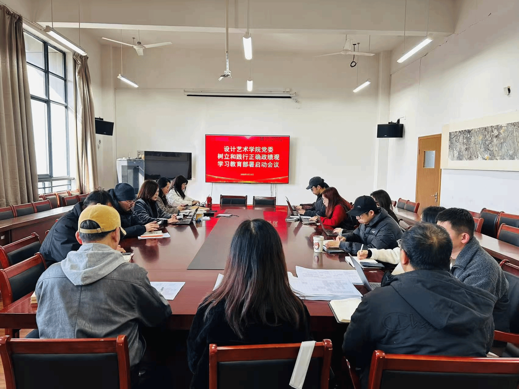 在设计楼317会议室召开党委扩大会议,深入学习贯彻习近平总书记关于树立和践行正确政绩观学习教育的重要讲话和重要指示精神,传达学校学习教育部署启动会精神,部署启动学院树立和践行正确政绩观学习教育工作。学院党政班子、支部书记、系主任、主管、工会主席等参加会议,学院党委书记王丽主持会议并讲话。
