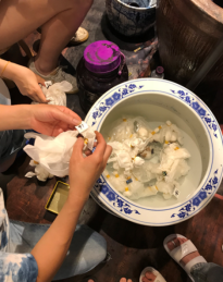 吴越人家负责人浙江省非物质文化遗产萧山过江布传承人吴妈妈给大家讲述了其品牌历史及草木染的知识,并且也邀请同学们亲手体验草木染的制作工艺。