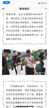 的一张名片——移动三脚架志愿服务队,这次移动三脚架在暑期为贵州乡村拍摄专题图片、村民全家福并且将所有的作品最后以影展的方式呈现给村民和外界。在拍摄作品的过程中,服务队不同专业的学生利用其专业知识和专业素养。摄影专业和导演专业通过拍摄作品来呈现问题,其他专业作为辅助,通过专业视角提供拍摄意见,最终通过整理所得资料因地制宜、因时制宜提出脱贫建议。