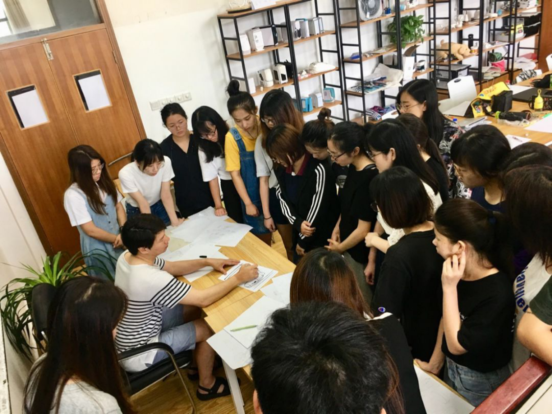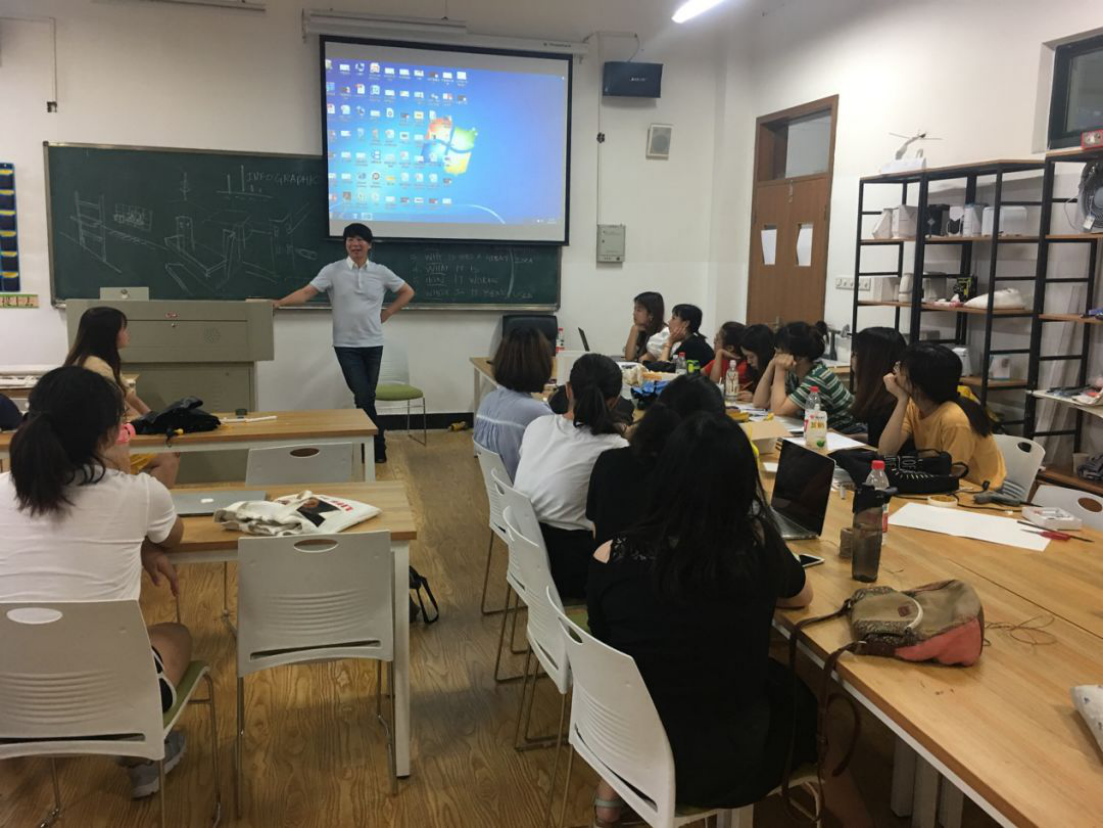 Professor TJ从草图绘制到设计的思路与模型制作过程一步一步的传导给15产品设计班的学生们。