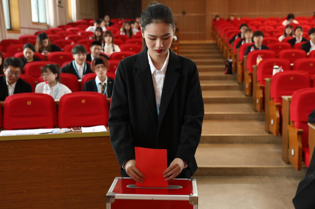 经民主投票,范梦圆、张鑫、文敏怡三位同学当选新一届学生会轮值主席,从老主席手中接过了院旗。同时,田梦泽等13名同学也当选为校学代会学生代表。