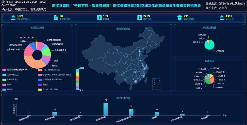 2023届本科毕业生304名,涵盖专业包括摄影、视觉传达设计、产品设计、服装与服饰设计(中外合作办学)、戏剧影视美术设计等五个专业,都参与了简历投递。