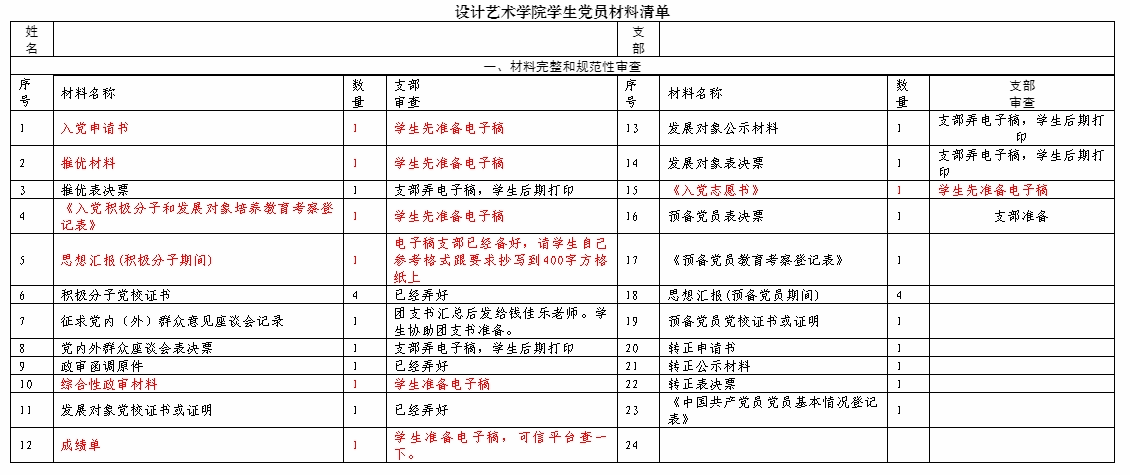 以上标红的材料,全部由学生自己准备电子稿,在12月16日前汇总好,压缩包命名“班级+姓名+党员材料”发送至给钱佳乐(钉钉搜索)。