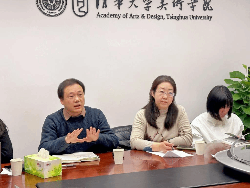 在清华大学美术学院,于友成一行与副院长董书兵教授、研究生工作组组长岳嵩副教授以及染织服装艺术设计系副教授李迎军进行深入交流,并参观了艺术与设计实验教学中心的众多实验室。