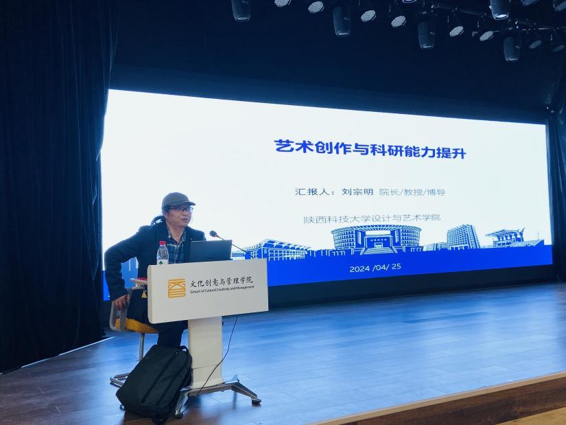 2024年4月25日,陕西科技大学设计与艺术学院院长刘宗明教授在文管创意盒子开展“艺术创作与学术能力提升”专题讲座。