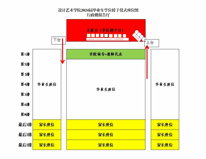 (4)归还:在主席台左侧交还学位证书封皮,回到原座位;