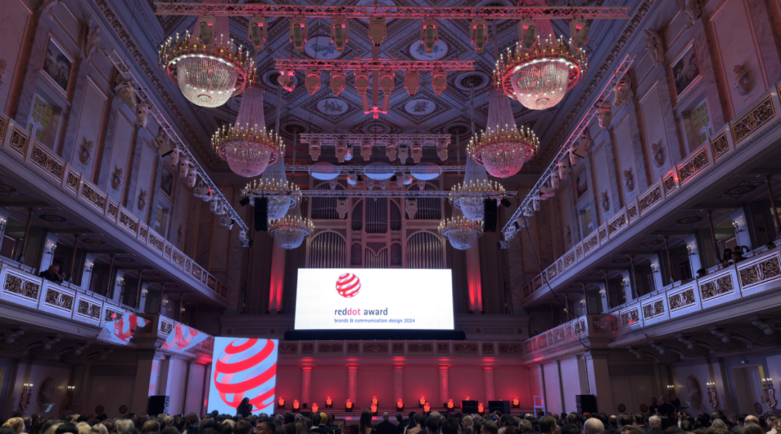 2024年11月1日,红点奖品牌与传播设计大奖颁奖典礼在柏林隆重举行,吸引了来自35个国家的设计师和嘉宾参加。我院杨超教授与澳门大学梁蓝波教授合作的作品“Cheers, Macau!”(《干杯吧,澳门!》)荣获红点至尊奖(Red Dot: Best of the Best),并获邀上台领奖。