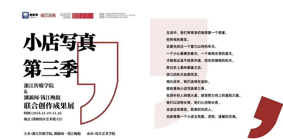 承办的“小店写真第三季”联合创作成果巡回展在我校钱塘校区艺术楼大厅顺利开幕。