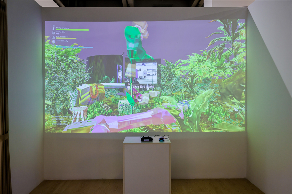 艺术家武子杨/ 马克·拉莫斯(Mark Ramos)的作品《互联生态系统》是一个基于一系列数字感官所构成的生态系统的实时模拟项目。参与者开发了新的数字感官,以体验随着环境变化而产生的数据,并在不断变化的在线环境中与模拟的世界彼此互动。