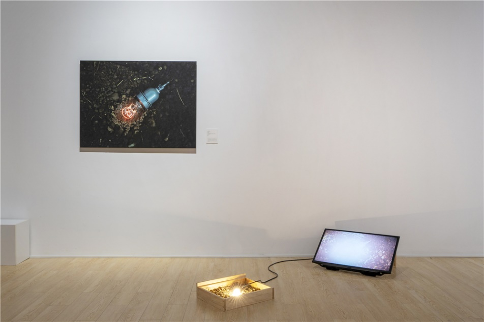 艺术家石玩玩的作品《寂静的春天》在木质扁抽屉里的土壤上放置一个白炽灯泡(或者半掩埋),灯泡一直在闪烁,就像是孤单的喃喃自语。在闪烁的过程中,这块土壤里的水分,会缓慢的在展厅里蒸发,水土在喃喃细语中慢慢分离。灯泡里闪烁的是摩斯电码,来源于《寂静的春天》里摘选的一句话:“当春天变得寂静,我们才明白,那失去的不仅是鸟鸣和花香,更是我们内心的宁静与和谐”。