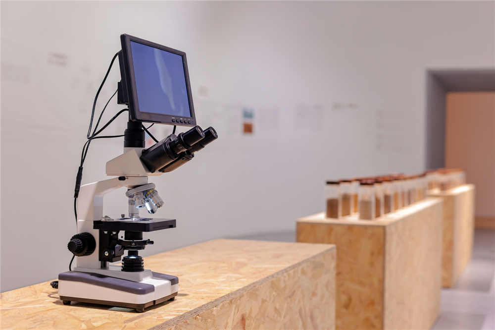 值得一提的是,本次展览与中科院南京土壤研究所合作,在序厅设置了Soil Lab土壤实验室,Soil Lab将土壤科学的魅力带入公众视野,成为科普部分的亮点。通过精心策划的互动展示,让参观者亲身体验土壤的奥秘。展区内,观众可以近距离观察土壤样本,通过显微镜探索土壤中的微观世界,观察那些肉眼不可见的微生物和有机颗粒。同时,还特别设计了土壤气味闻取体验,让观众通过嗅觉感受土壤的生命力。这些设置增加了公众对土壤科学的认识,也强调了土壤作为生命之源的重要性。科普展区的核心目标是致力于将科学知识转化为直观、互动的体验,让每个人都能成为土壤保护的参与者和倡导者。
