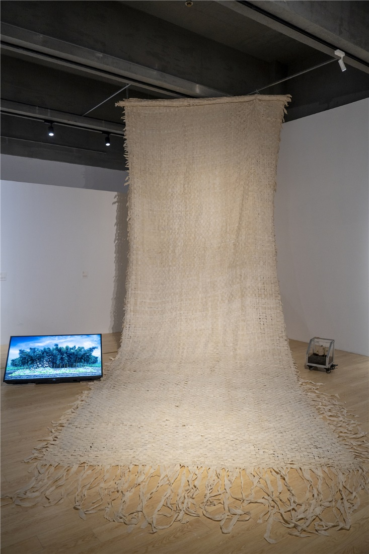 艺术家JUJUWANG的作品《种地毯》,通过将傣纸编织成地毯并铺设于花园之中,巧妙地搭建了自然与人类之间的桥梁。随着时间的推移,纸地毯逐渐溶解于土地之中,这一过程仿佛是大自然对人类创造物的温柔接纳,展现了自然界生生不息、循环往复的伟大力量。纸地毯的溶解,象征着一切存在的短暂性和无常性。在这份短暂之中,也蕴含着生命永恒循环的真理。