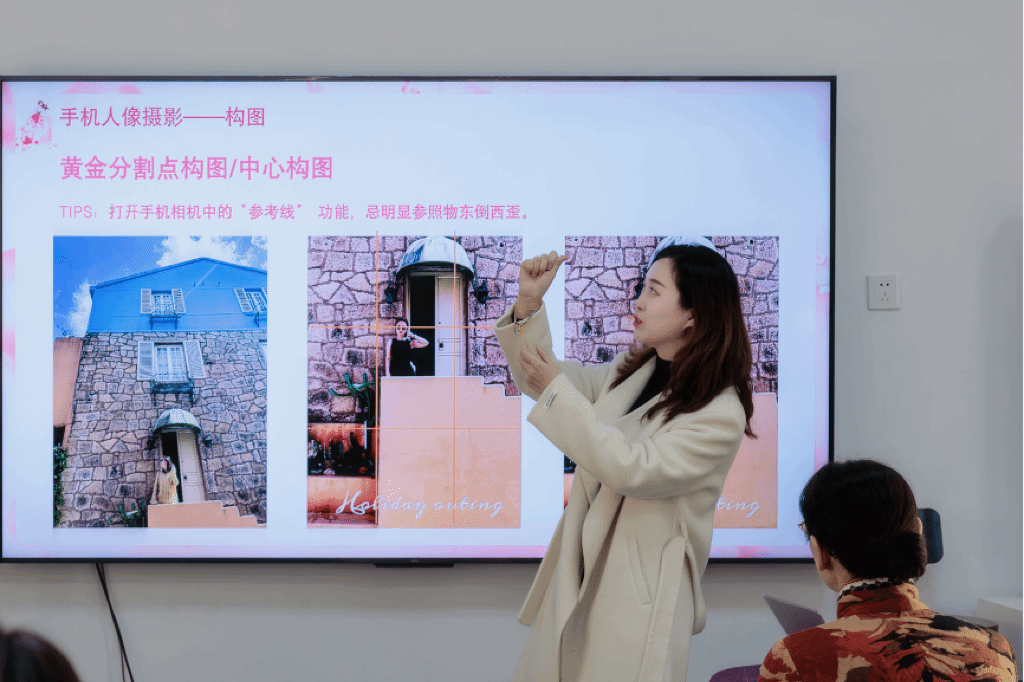 刘雅菁则以“超实用的手机人像摄影小技巧”为主题,结合实际案例深入剖析,系统讲解手机人像摄影的构图原则及提升上镜效果的实用方法,为参与教师提供满满的干货指导。