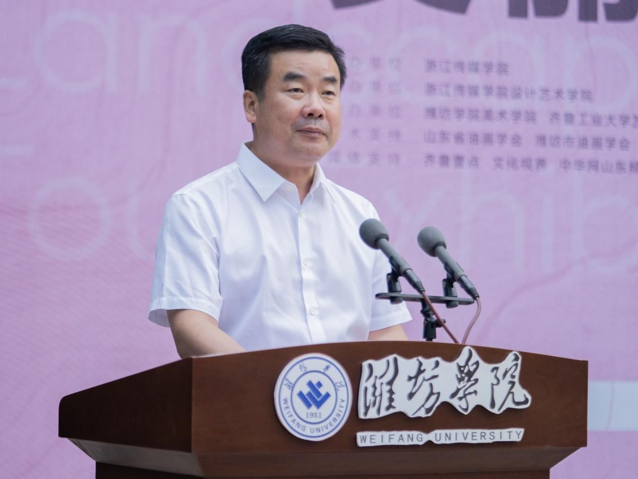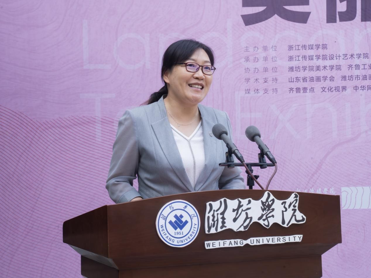 潍坊学院党委委员、宣传部部长张晓静首先致欢迎辞。她代表学校对远道而来的嘉宾和艺术家们表示诚挚欢迎,指出本次展览不仅展示了中国当代油画的高水准,也为青年学子搭建了宝贵的学习交流平台,将进一步激发学院的艺术创造活力。