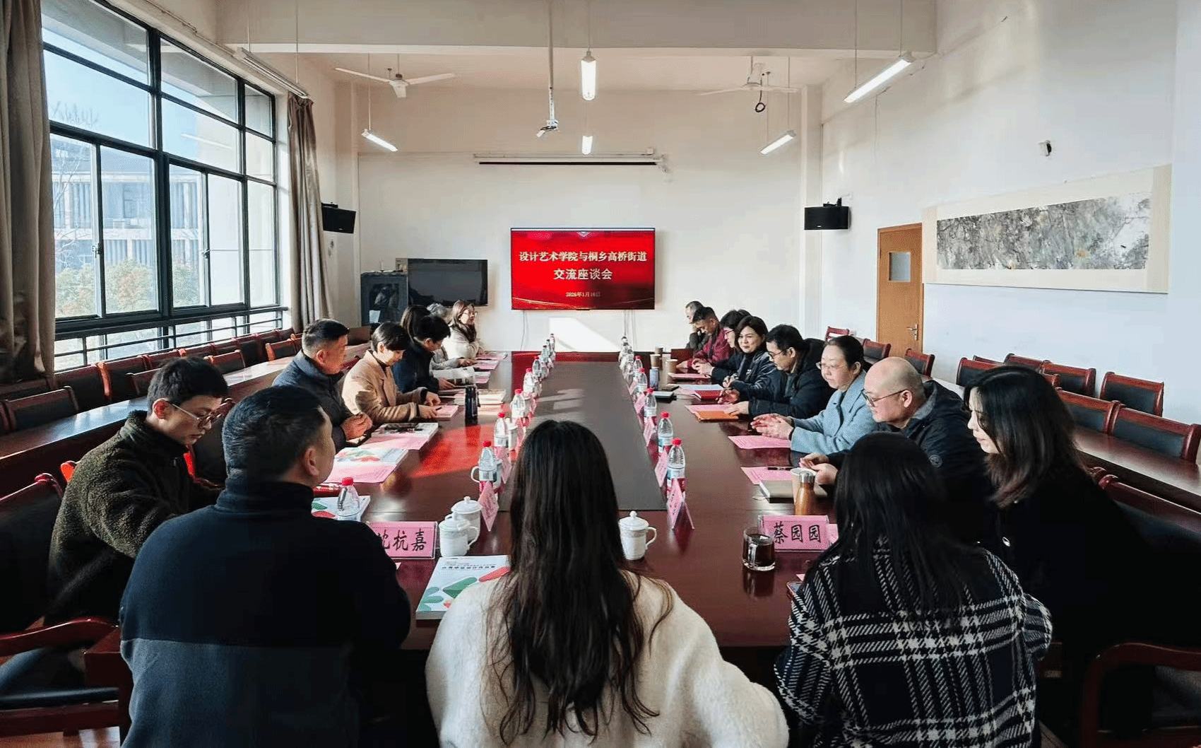院长康修机全面介绍了学院的发展历程、人才梯队与专业布局,展示了学院在艺术设计领域取得的显著成果。结合高桥街道的发展需求,他提出了校地合作的初步构想,明确将发挥学院专业优势,从视觉设计、产品研发、新媒体传播等维度,助力桐乡地方经济社会高质量发展。