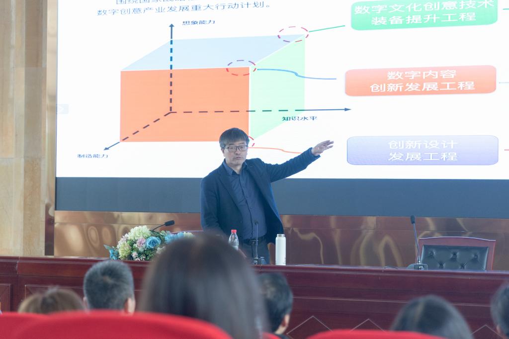 党的二十大报道提出:加快发展数字经济,促进数字经济和实体经济深度融合,打造具有国际竞争力的数字产业集群。孙教授从创新设计的趋势与特点出发,以戏剧影视美术设计为例,与同学探讨了人工智能对当下设计行业的影响。随后,孙教授结合HCPS(人类社会-信息网络-物理环境融合系统)的概念,阐述了当下利用信息网络为产业赋能的大趋势。