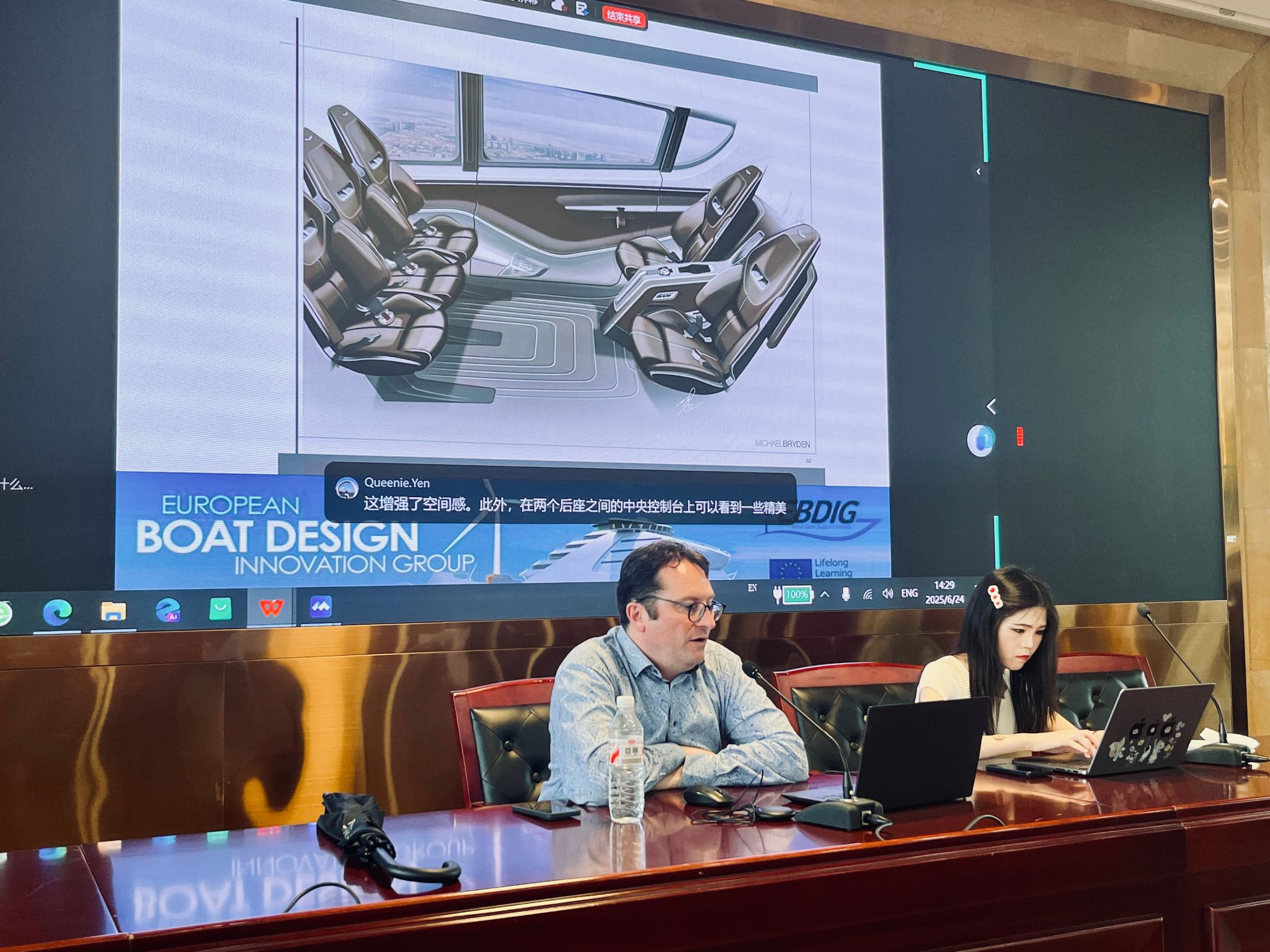 讲座内容丰富,逻辑清晰,从理论到实践,为在场师生呈现了一幅设计驱动创新的全景图。McCartan教授以多个实际案例展示了DDI的应用,包括面向老龄化人群的包容性游艇设计、应对气候变暖的加拿大冰路气垫船、被重新定义为"漂浮的私人会员俱乐部"的邮轮市场、融合上海装饰艺术风格的中国市场高速海岸巡洋舰、服务于欧盟TEN-T项目的欧洲海上高速公路三体船,以及重新定义远洋旅行体验的跨大西洋高速超级邮轮等。这些案例不仅成功开拓了新的细分市场,还通过融合前沿技术与情感化设计,有力推动了交通工具设计从传统功能导向向更深层次的"意义创造"转型,为未来设计创新提供了极具启发性的范式。
