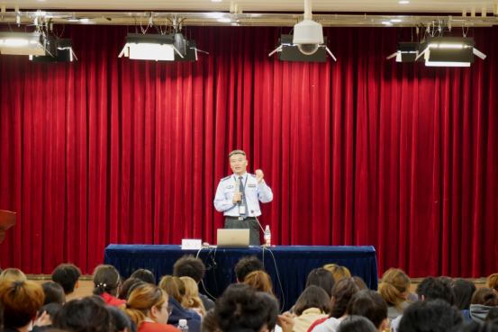许警官剖析了被诈骗者的心理,告诫同学们被骗与否并不完全与学历挂钩,不仅农民工会上当受骗,退休教授也会陷入骗局。