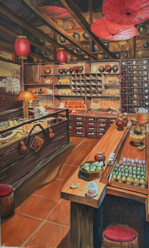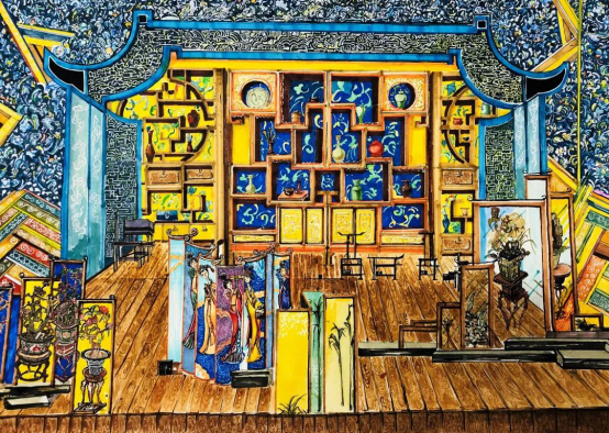 强调对中国传统艺术元素的综合性、创新性的运用。不仅包括器物和建筑等实体的运用,还包括对中国传统图案、纹样和色彩的融合运用,更为注重整体对中国传统艺术气韵的生动表现。