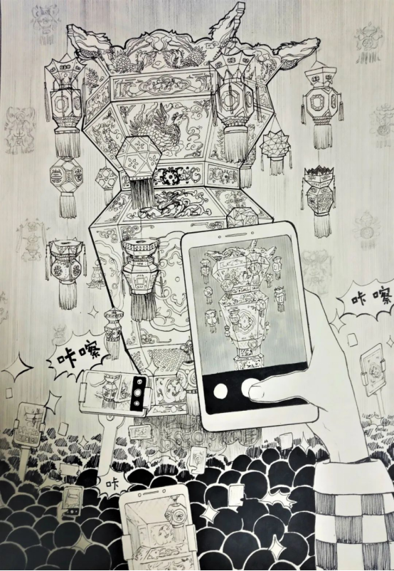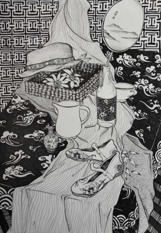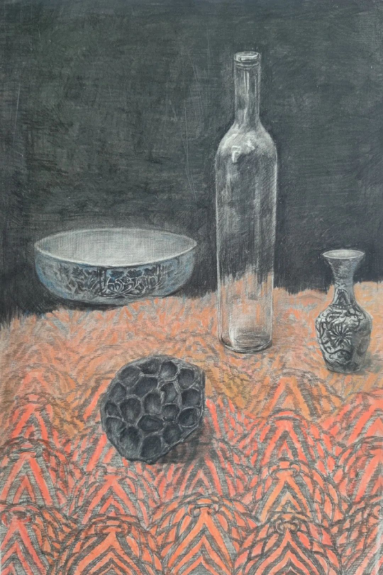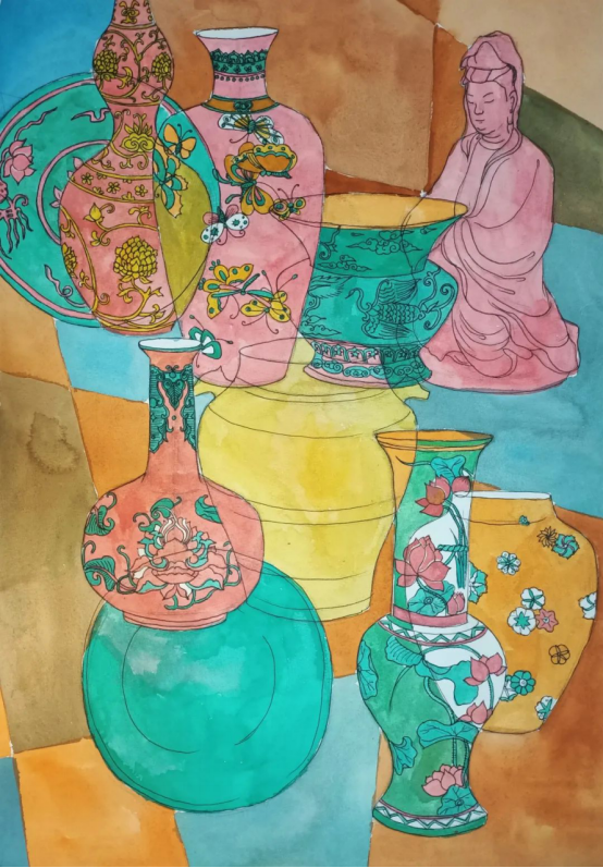 物华天宝,中国几千年的文明所遗留的各种珍贵文物和工艺美术器物都是很好的创作素材。通过对传统器物为主体的静物组合进行写生或以相关文物图像资料为创作主题的方式来加强对中国传统艺术的认知和运用。