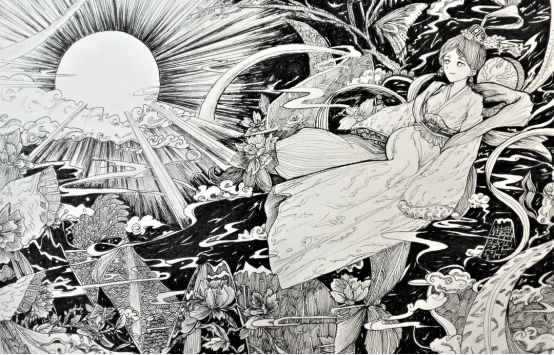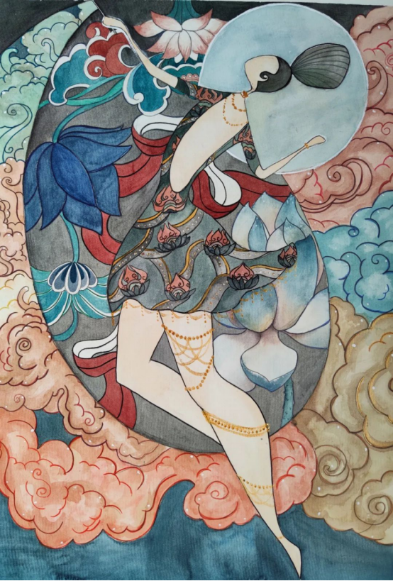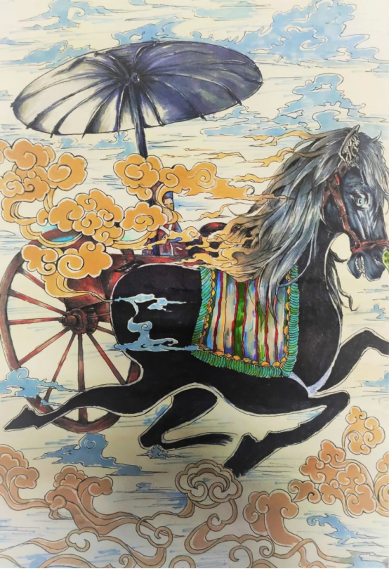 根据命题进行自由创作,按照美的规律对中国传统艺术素材进行选择、加工、概括、提炼,充分发挥想象力和创造力,构思出主观与客观交融的审美意象,然后恰当的造型艺术语言将审美意象表现出来,最终构成内容美与形式美相统一的艺术作品。