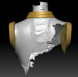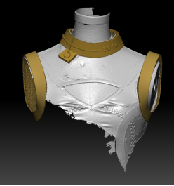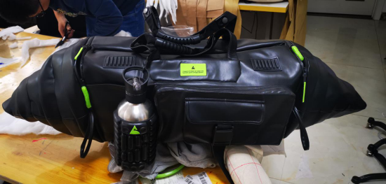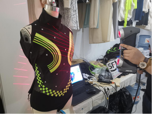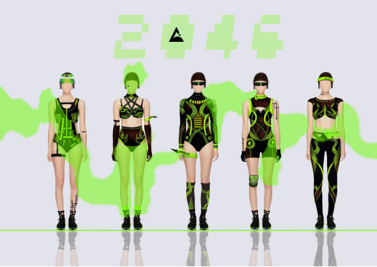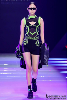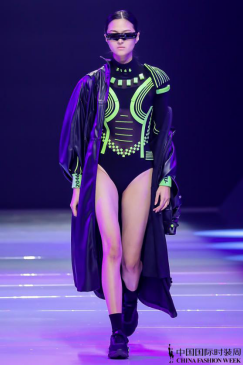 这套服装创新点是将物理性质相近的材料进行多种工艺组合,并附加其功能性。包括柔性3D打印工艺、树脂包裹硅胶编织工艺、定制硅胶光源镭射工艺,这些特殊的工艺能增强服装抗压力和回弹力,并具备可拆卸功能,方便消费者选择。