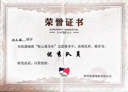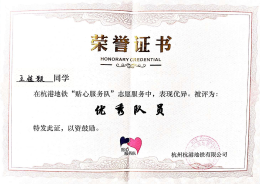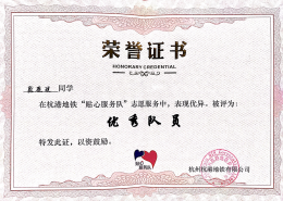 2020年10月30日,杭港地铁年度表彰会在我院举行。杭港地铁有限公司的负责人授予我院青年志愿者协会“优秀支队,贴心服务队”锦旗,并且为志愿活动中表现突出的同学颁发了证书,并在会议的最后与辅导员老师和学生合影留念。