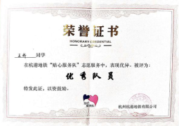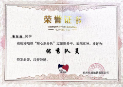 自杭州杭港地铁有限公司携手我校共同成立“贴心服务队”以来,我院志愿者在地铁一号线下沙文泽路站开展杭港地铁志愿服务活动,为乘客提供道路引导,行李搬运等便民服务,广受赞誉。