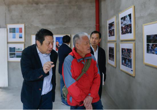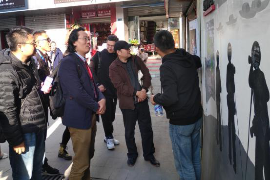 项目总策划傅拥军向参观市民介绍“七条小巷”作品