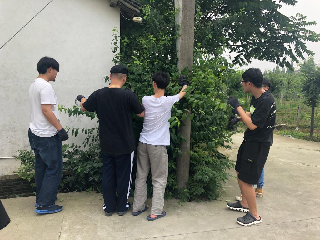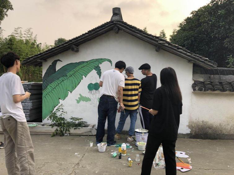 大部分同学都是第一次画墙绘,简简单单的图稿放大到墙上,与在纸上作画有着巨大的差异,只有亲自下笔才能体会到其中的不同。而在下田劳作中,同学们也真实地体会到“稼穑之艰难“这话不只是书本上简单的几个字,一天辛苦的劳动之后,粗茶淡饭比炸鸡可乐更让大家开胃。