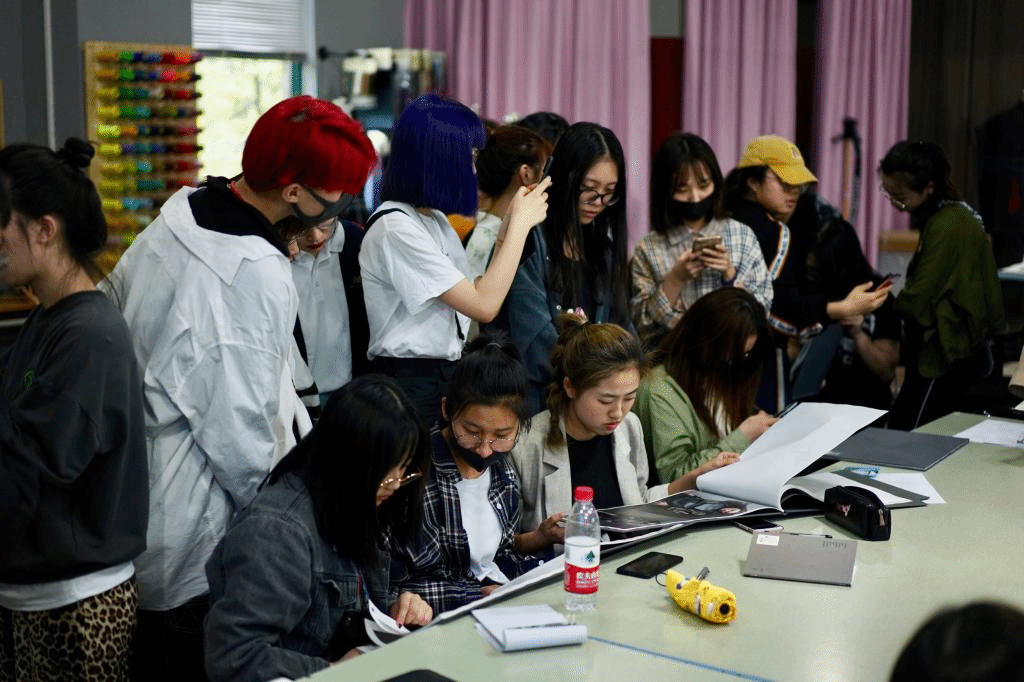 一个多小时的经验分享结束之后,学生们依旧意犹未尽,围住了Sarah Gresty,交流询问专业问题。虽然同学们的英语不是特别流利,却依旧热情不减。随后,Sarah Gresty展示了获得中央圣马丁艺术学院offer的学生作品集。